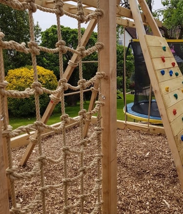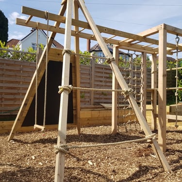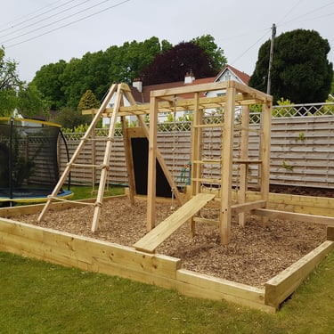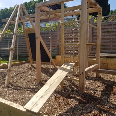 With several years experience in one of the country's leading natural play build companies we can design and build bespoke play areas using sustainable, natural materials such as oak and larch. Our structures are designed to be aesthetically pleasing and will enhance your garden as well as provide adventurous, challenging fun for children.