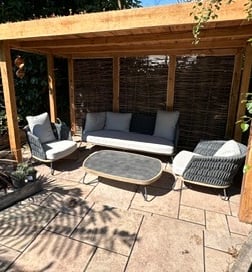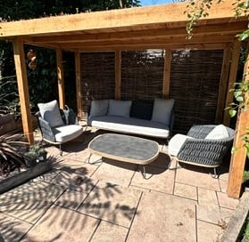 Family Gardens transformed the bottom of our garden into an exotic oasis where we can escape to, unwind and entertain. We love the oak framed pool-house with it's natural sedum roof!