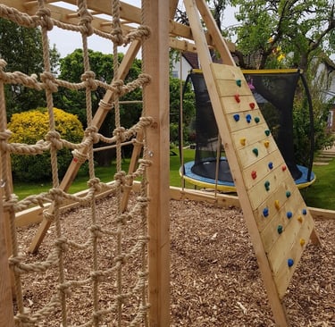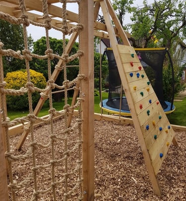 Introduce a natural play element which can be as simple as a balancing beam or create a structure combining lots of elements to encourage cognitive and physical development.